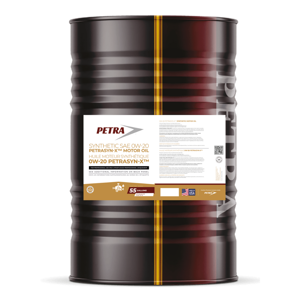 PetraSyn-X Synthetic 0W-20 engine oil is formulated to help improve fuel economy and provide excellent all weather engine protection.
