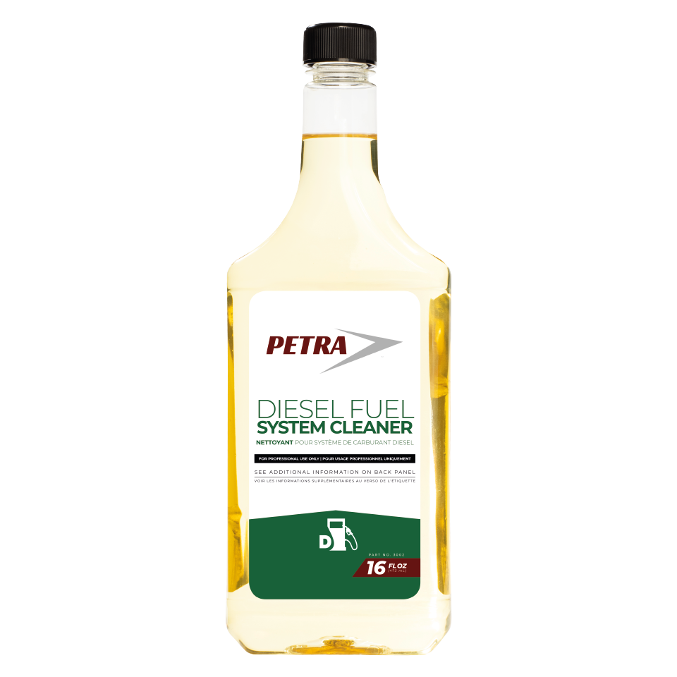 Deposits can accumulate in diesel-powered engines due to low quality or unadditized fuels and from certain types of driving patterns. This can lead to poor drivability, loss of power, lowered fuel economy, dirty fuel system, decreased acceleration and exhaust valve sticking. Petra Diesel Fuel System Cleaner can prevent and eliminate these problems. Petra Diesel Fuel System Cleaner is specifically formulated to address these problems by removing engine deposits, restore flow to fuel injectors and increase power and performance. It also aids in reducing emissions, is DOC and sensor safe and helps improve fuel economy.