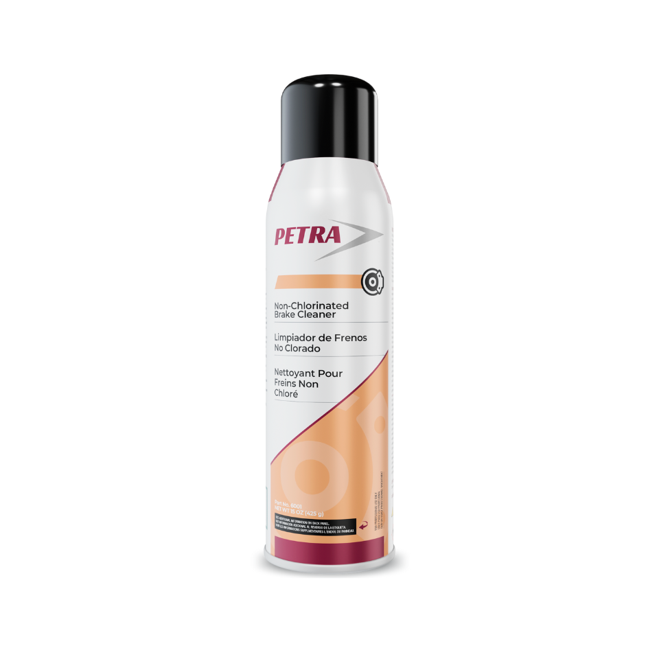 Petra Non-Chlorinated Brake Cleaner is a blend of fast acting, clean drying solvents that quickly remove grease, oil, brake and hydraulic fluid and other contaminants. Petra Non-Chlorinated Brake Cleaner exhibits high solvency for brake fluid, oil, grease and dust beyond the capacity of regular petroleum solvents. The aerosol spray helps dislodge surface dirt and oil. The special formulation works effectively, dries fast and evaporates completely. For use on brake parts, linings, drums, rotors, calipers, springs, backing plates, cylinders, brake shoes, disc brake pads, clutches and CV joints. Works without disassembly. It is an all around degreaser and may also be used on clutch discs and pressure plates, electric motors, switches and contacts.