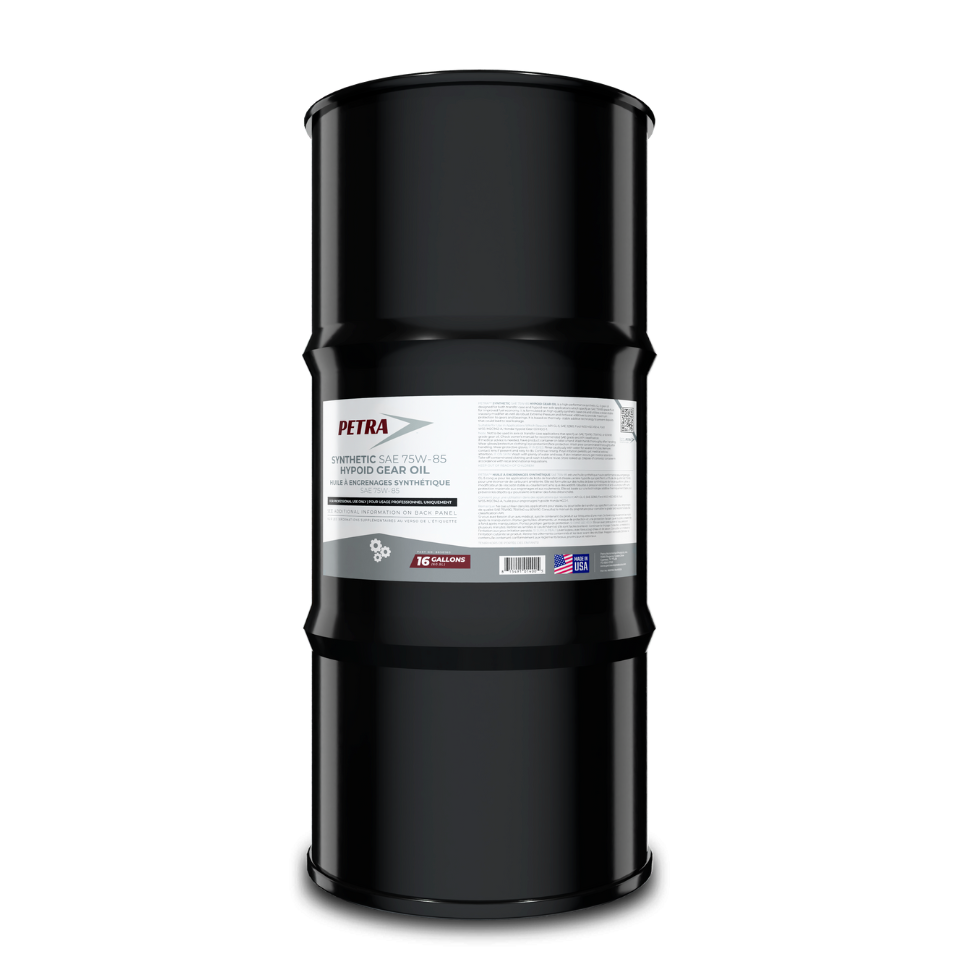 Petra SAE 75W-85 Synthetic Gear Oil, API GL-5 is a high-performance synthetic GL-5 gear oil designed for both transfer case and hypoid rear axle applications which specify an SAE 75W85 grade fluid for improved fuel economy. It is formulated on high-quality synthetic base oils and utilizes a shear-stable viscosity modifier as well as robust Extreme Pressure and Antiwear additives to provide maximum protection to gears and bearings. It is based on thermally-stable additive technology to prevent deposits that could lead to seal leakage.