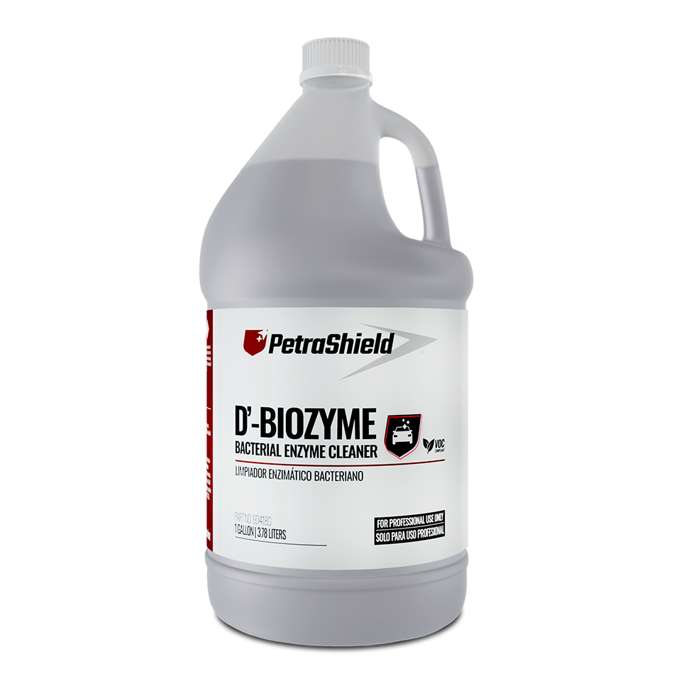 PetraShield™ D’-Biozyme is a synergistic blend of bacterial enzymes which breakdown grease and oils. Cleans stains and odors from carpet and upholstery caused by urine, feces, blood, wine, coffee, vomit, and more. Eliminates odors naturally. Highly concentrated – contains 400 billion organisms per gallon, ensuring a safe and natural cleaning process.
