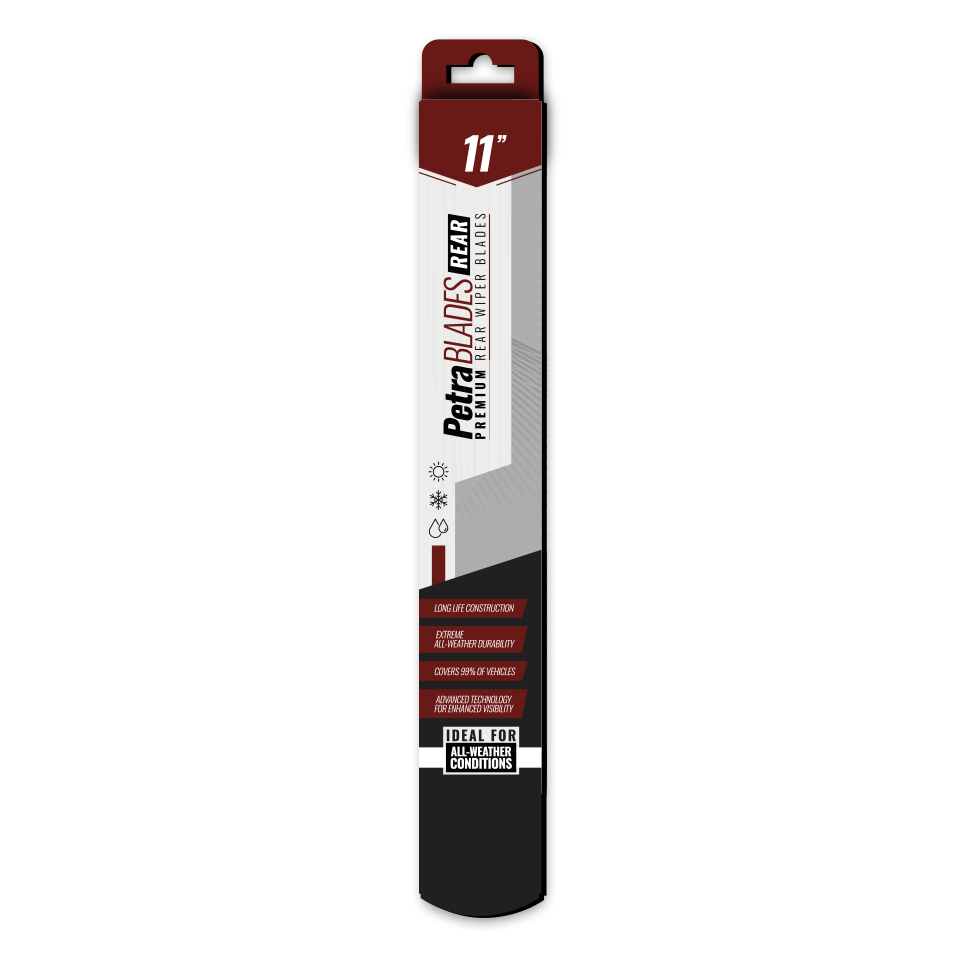 PetraBlades Rear Wiper Blades are engineered to the same high standards as our front beam blades, delivering durability, smooth wiping performance, and clear visibility where drivers need it most. Made with premium rubbers and advanced construction, these rear blades are designed to withstand extreme weather while maintaining a sleek, OE-style appearance.
