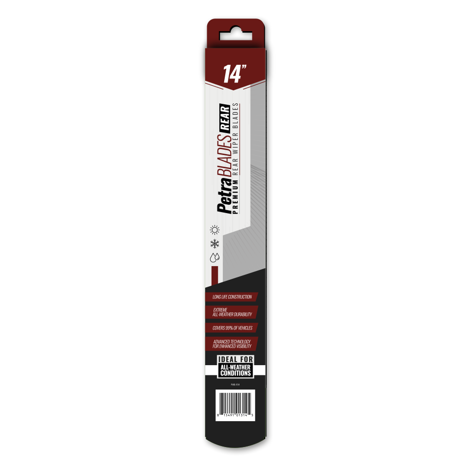 PetraBlades Rear Wiper Blades are engineered to the same high standards as our front beam blades, delivering durability, smooth wiping performance, and clear visibility where drivers need it most. Made with premium rubbers and advanced construction, these rear blades are designed to withstand extreme weather while maintaining a sleek, OE-style appearance.